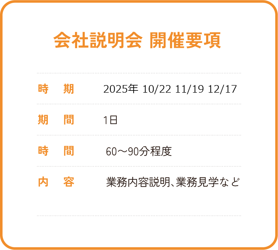 ※期間や時間についてはご要望がございましたら、ご相談ください。